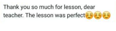 Занятие можно перенести или отменить за 12 часов до начала, если позднее - оплата не возвращается, но я высылаю материалы урока и домашнюю работу. Если мне нужно будет переносить занятие, то я предупреждаю за 12 часа до начала, если позже - провожу одно бесплатное.